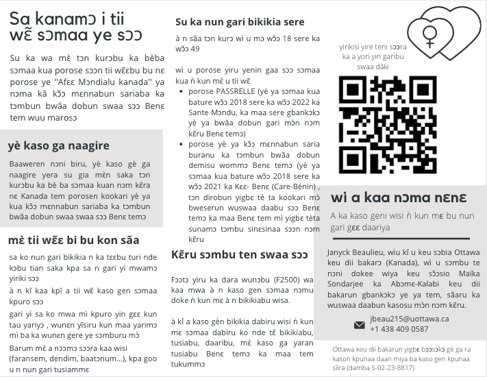 Pamphlet de recrutement de femmes participantes