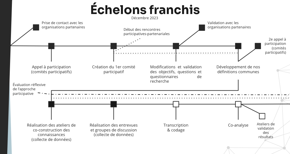 Ce comité comprends des militant-es féministes du Bénin oeuvrant en santé et s’intéressant à la question de la participation et des enjeux en santé et droits sexuels et reproductifs souhaitant s’impliquer dans ce projet de recherche. Elles participeront à différentes activités du processus de recherche, de la validation des objectifs de recherche, en passant par la collecte de données à la co-rédaction d’articles scientifiques et de conférences, selon leurs intérêts et désirs.